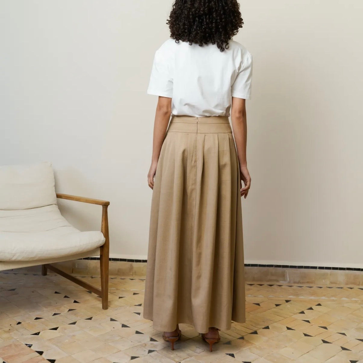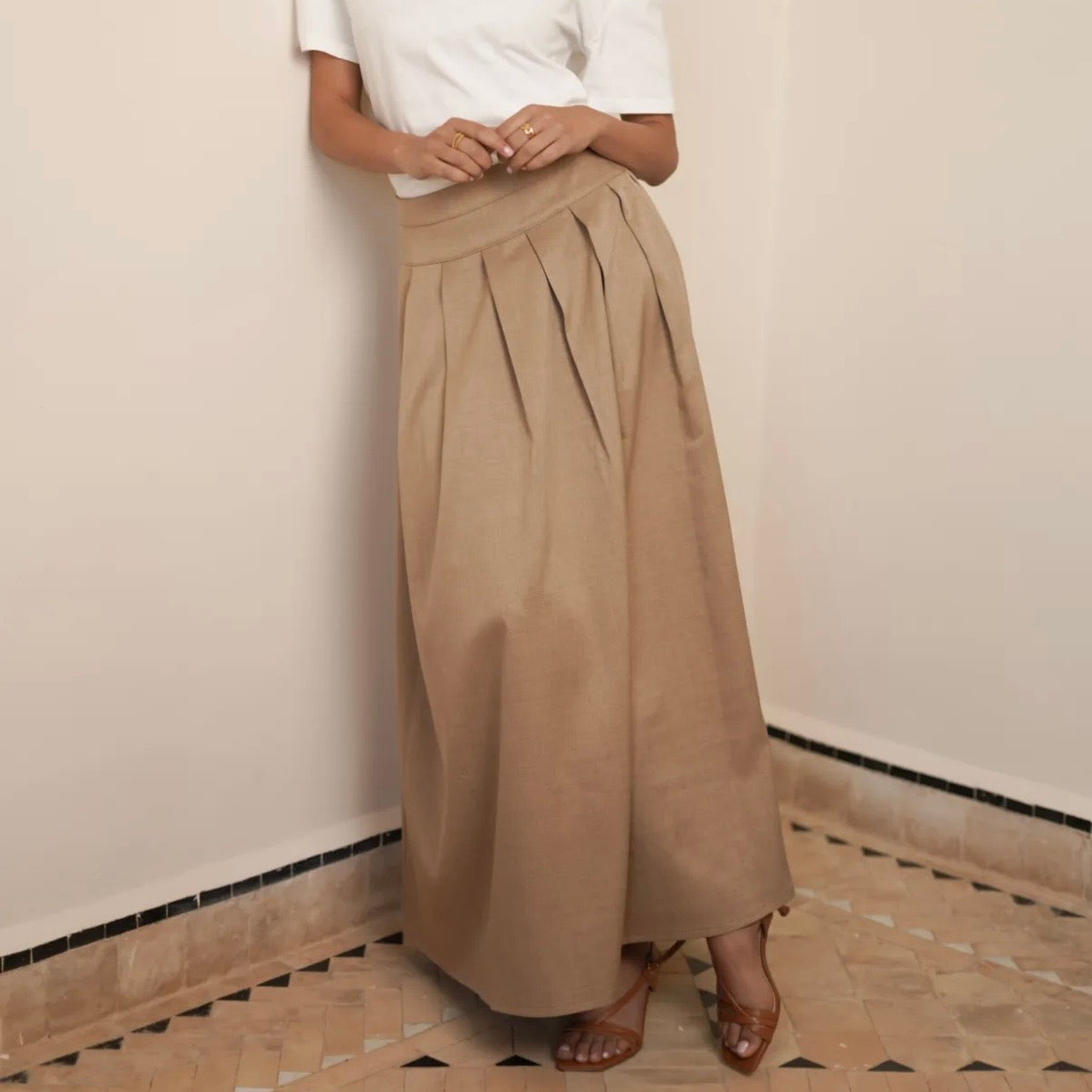 La jupe MARRAKECH se marie à merveille avec des basiques raffinés :