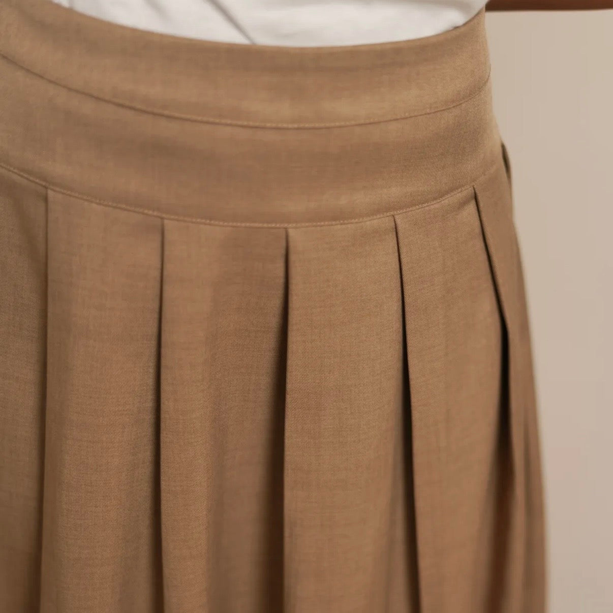 Silhouette Sculpturale : Une coupe longue et évasée avec des plis plats qui allongent la jambe et apportent un mouvement gracieux à chacun de vos pas.